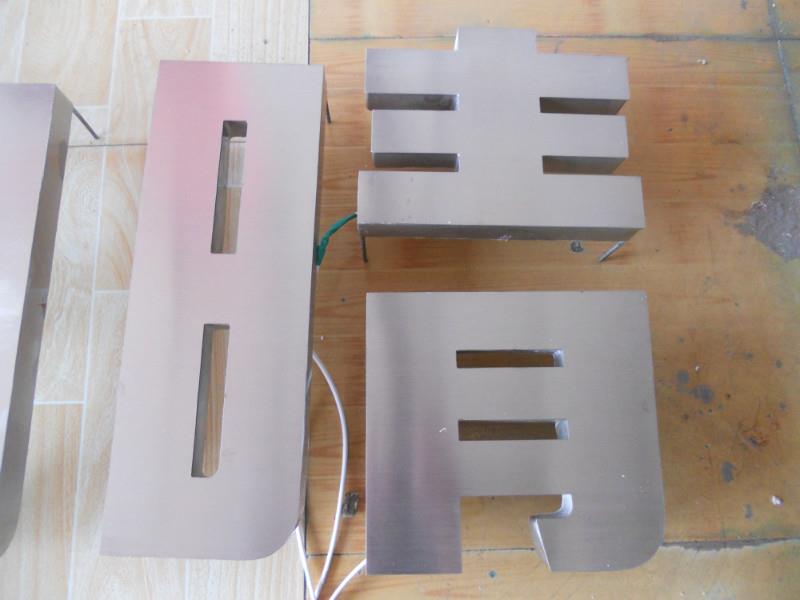 不锈钢字制作厂家,我工厂有不锈钢字加工成套设备,激光切割机,自动抛曹折弯机,激光氩弧焊机,各类不锈钢加工设备。根据客户来图制作也可为客户提供测量出图打样服务,根据您来图制作,根据图纸激光切割不锈钢字面,折弯机切个不锈钢边条,边条对应字面激光焊接也可手工锡焊,修边打磨处理字面。拉丝不锈钢字,镜面不锈钢字,不锈钢字镀钛,不锈钢做旧等金属字。金属字适用于各类标识标牌,室内不锈钢字标识